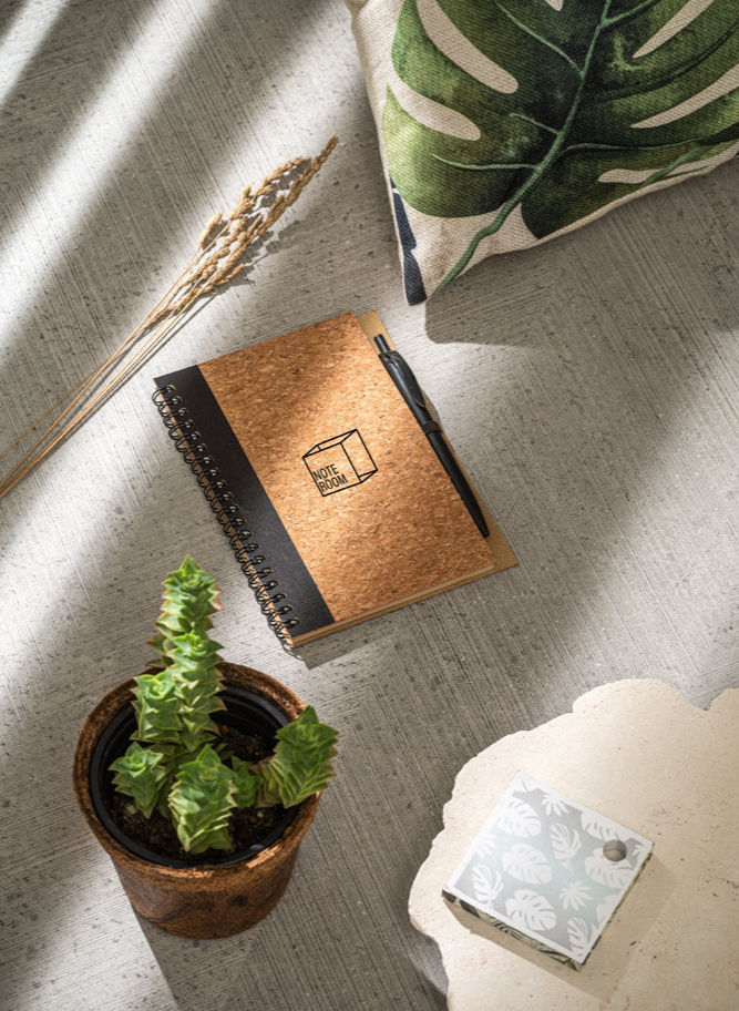 Caderno B6 em cortiça com caneta em fibra de trigo
