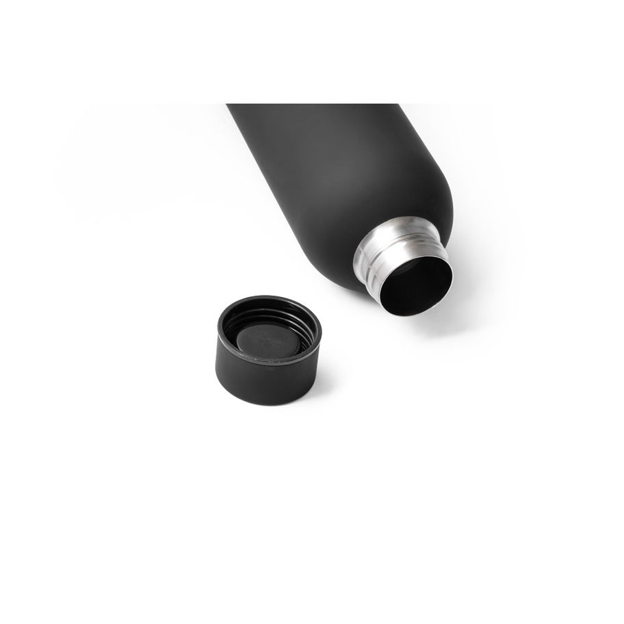 Garrafa em aço inox (36% reciclado) de parede dupla térmica, isolada a vácuo, com tampa em aço inox. Parede com acabamento emborrachado dando um toque sofisticado. Capacidade até 550 mL. Preserva as bebidas quentes por 8 horas e as bebidas frias por 24 horas. Fornecido em caixa presente.